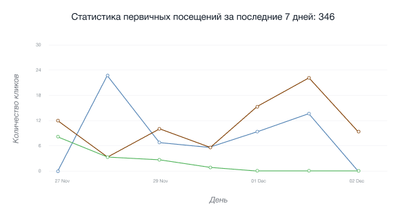 • Diagramma sizning hamkorlik havolangizga birinchi marta bosganlar sonini namoyish etadi.